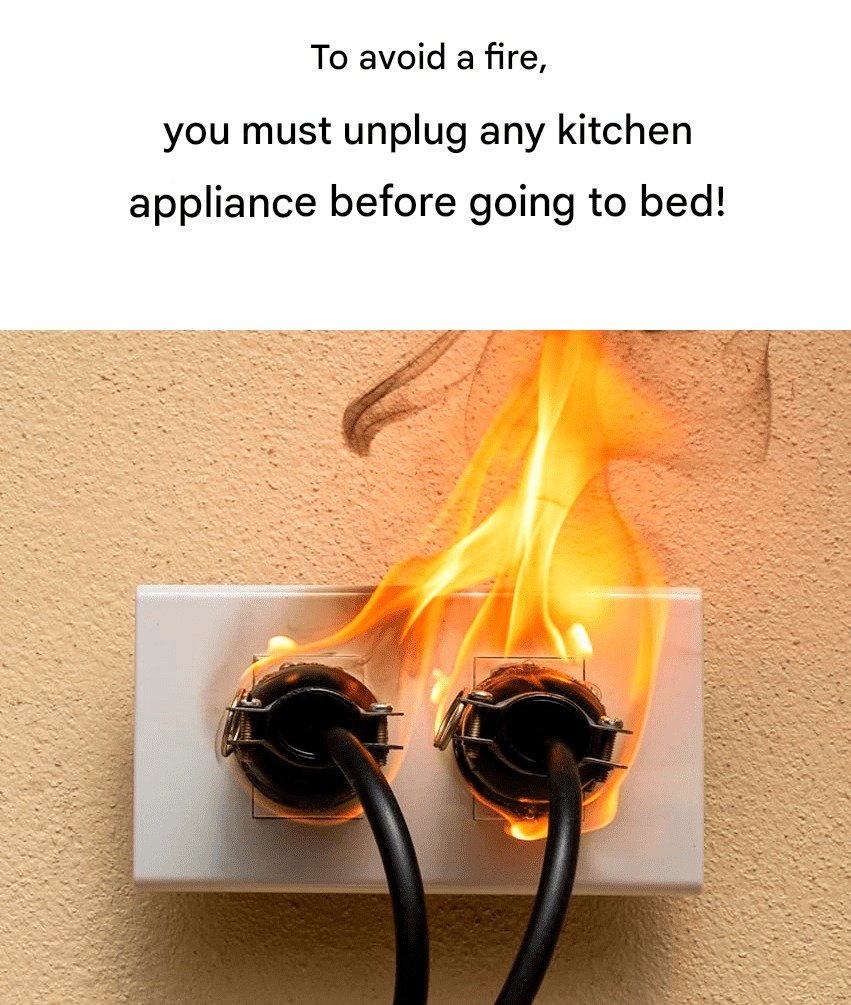 🛑 Bottom line: Unplugging your toaster before bedtime is a simple, effective step to reduce fire risk in your home.