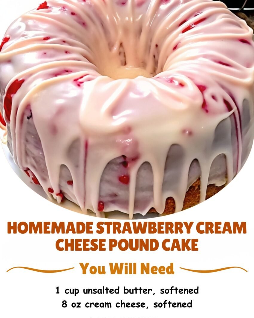 Here’s a delicious homemade Strawberry Cream Cheese Pound Cake recipe—rich, moist, and perfect for dessert or tea time:
