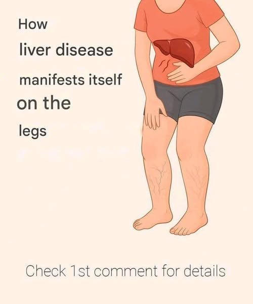 Tiny web-shaped blood vessels appearing on the legs can sometimes be related to liver disease. These are known as Spider Angioma.